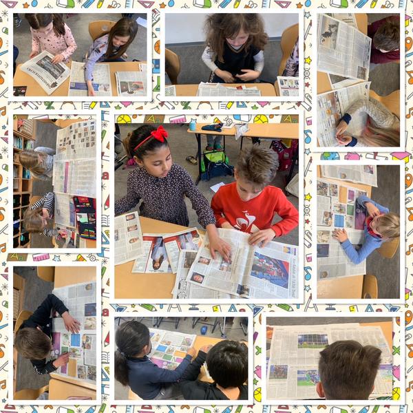 In diesem Schuljahr nehmen wir an dem Zeitungsprojekt "Kinder lesen Zeitung" teil und bekommen das Darmstädter Echo an die Schule geliefert. Gemeinsam haben wir uns den Aufbau einer Tageszeitung angeschaut und gemeinsam nach interessanten Artikeln gestöbert. Besonders interessant fanden wir die Rätselseite, die Kruschelseite und den Sportteil. Wir konnten aber auch passen zu unserem Thema in Sachunterricht die Wettervorhersagen lesen und prüfen.