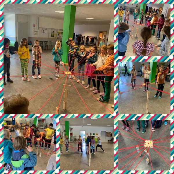 Zwischendurch lernen wir uns auch als Gruppe immer besser können und haben es geschafft, den Fröbelturm gemeinsam aufzubauen. Das war ganz schön aufregend und spannend.