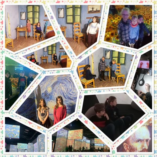 Am Dienstag, den 28.März 2023, sind die Klasse 3a und 3b der HQS Bickenbach nach Frankfurt in die "Van Gogh Alive" Ausstellung gefahren. Dort konnte man sich in ein Zimmer, das wie ein Bild von Van Gogh gebaut war, reinsetzen. In einer großen Halle saß man gemütlich auf Kissen und schaute sich große Bilder von Van Gogh an. In einem Raum konnten die Kinder sogar Bilder von ihm nachmalen. Das war ein toller Ausflug.