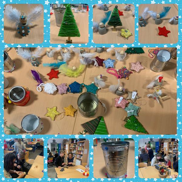 Gemeinsam gestalteten wir wunderschöne Kunstwerke, die wir dann Ende des Monats beim Lichterfest verkaufen werden. An unserem Stand wird es Engel, Bäume, Sterne und Dosen-Leuchten geben.