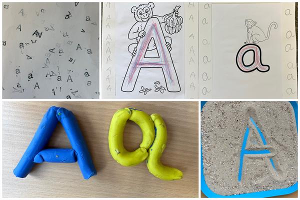 Zuerst hat uns Frau Arndt eine spannende Geschichte zum A/a vorgelesen und danach durften wir an verschiedenen Stationen das große A und das kleine a kneten, fühlen, in den Sand und auf das Smartboard schreiben und sogar stempeln.