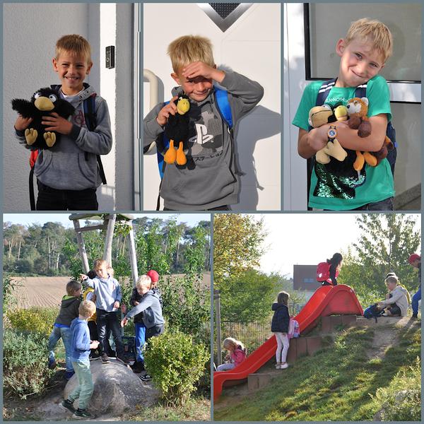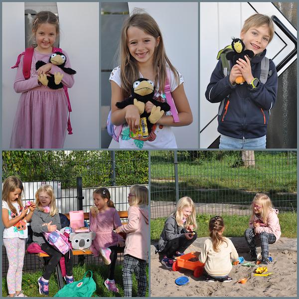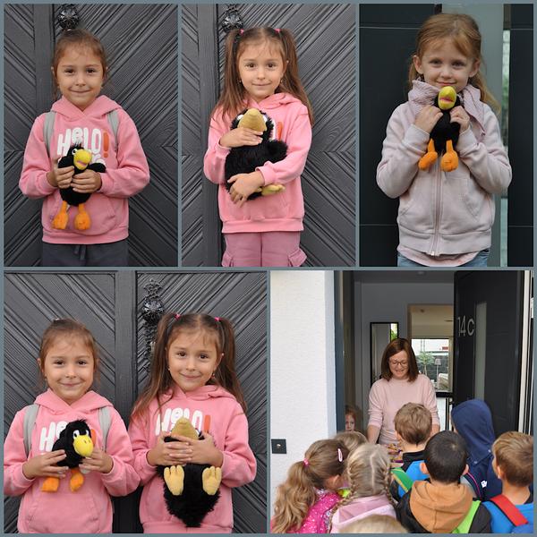 Jeder von uns hat einen großen Paten bekommen. Er hat uns mit einem schönen Gedicht willkommen geheißen und jedem von uns einen Stein geschenkt. Der Stein wurde mit einem Raben bemalt, weil wir die Rabenklasse sind. Wir haben nämlich drei Klassentiere als Maskottchen: Jakob, Nora und Max!