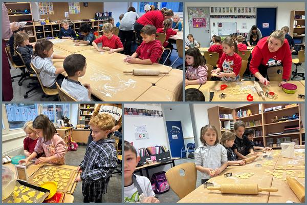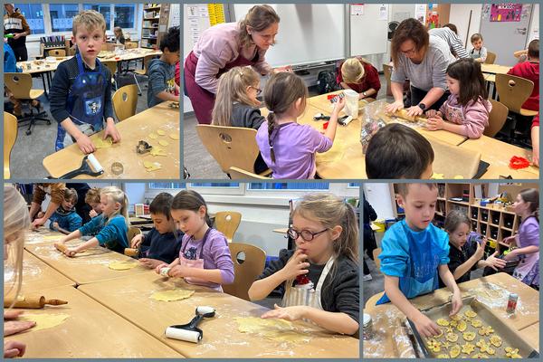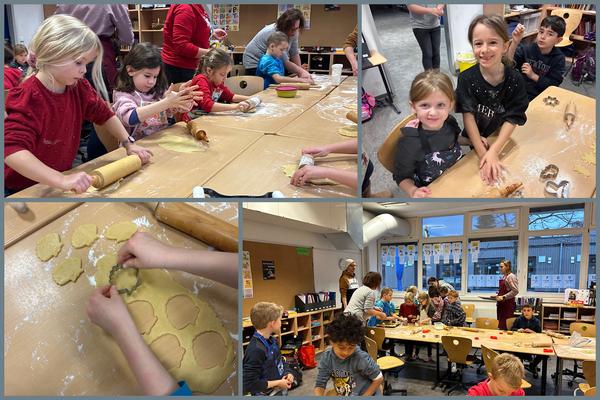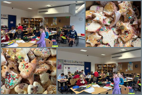 Wir haben in unserem Klassenzimmer Teig ausgerollt, Plätzchen ausgestochen und anschließend verziert. Ein paar Mütter haben uns netterweise geholfen. Jetzt haben wir für die Adventszeit immer genügend Plätzchen zum Genießen!